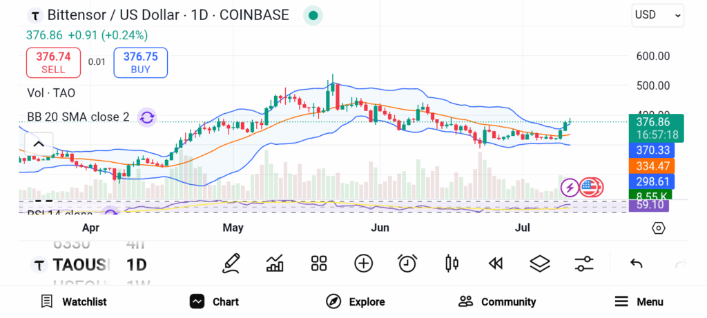 Bittensor recently dropped from the $500 area, shaking out weak hands. But now, support seems to be building. Buyers stepped in around $407 and helped stabilize the price. The next key zone sits between $420 and $425. A break above that range might trigger a short squeeze. That would likely send TAO past $440 in a quick rally. Beyond the chart, TAO stands out for a unique reason. It focuses on AI-powered blockchain infrastructure. As interest in artificial intelligence continues to grow, Bittensor could benefit directly. Its niche focus attracts tech-savvy investors looking for real-world utility. That gives TAO both relevance and long-term appeal. In July, this altcoin could quietly outperform the rest.