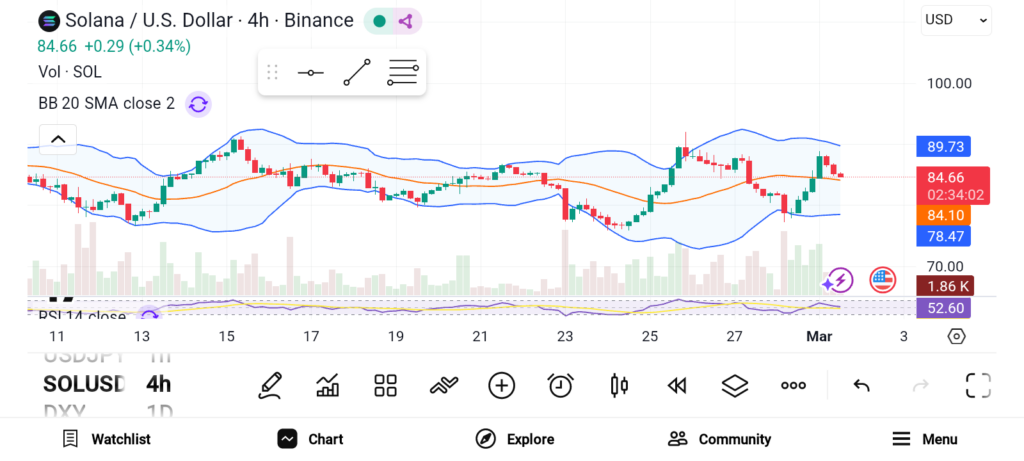 - Solana: Approaches $87 breakout with rising RSI and strong bullish momentum.