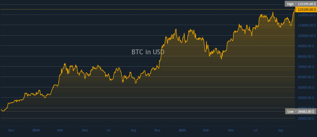 - Bitcoin (BTC) hit more than 125,000 confirming its dominance in the Crypto market, great liquidity, institutional pressure, and continued positive trends into 2025.