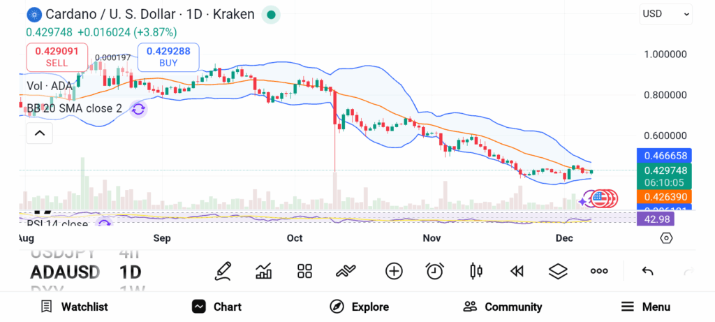 Cardano continues to attract whale interest, as large-cap coins regain focus in portfolios. Wallets holding over 1 billion ADA began buying on November 24, adding a total of 130 million ADA. Another group holding 10–100 million ADA started purchasing on November 26 and accumulated 150 million ADA.