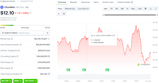 Chainlink recently saw a sharp market drop, leaving the Chainlink price fixed between $12.04 and $12.26. Despite this, the project started 24/5 U.S. equity data feeds to connect banking with the DeFi world.