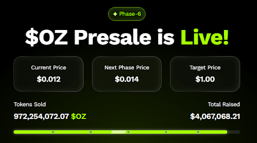 Ozak AI is at the center of this trend, already gaining momentum as an early-stage project with real-world utility. Having raised over $4 million and sold more than 970 million tokens in its presale, it’s quickly attracting whales and early movers who are positioning before retail FOMO arrives.