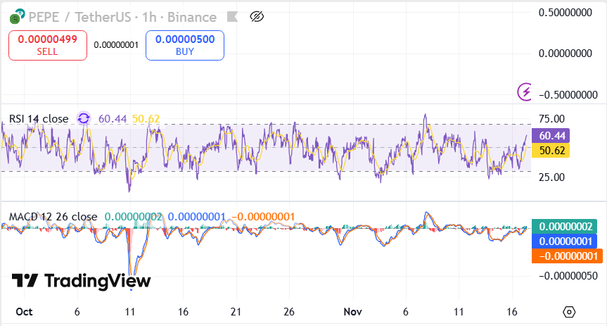 Pepe was traded in a close band in the last 24 hrs because the price of the stock was close to the support band. The token was traded at $0.054998, a minor 0.1 per cent fall in a day. This narrow shift came as trading indicators stayed constrained within established levels.