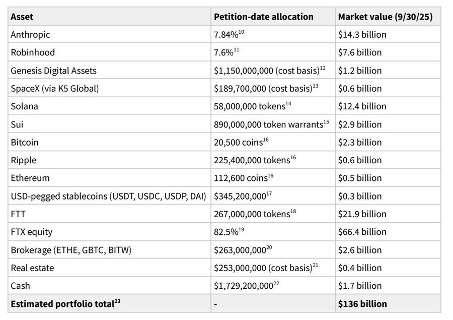 - FTX reportedly holds $136 billion in assets, including major stakes in Anthropic, Robinhood, and Solana.