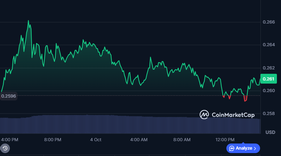 Early in the session, Pi Network experienced a short rally toward $0.266 before retracing modestly. Despite this pullback, trading volume remained stable, showing no signs of excessive selling. The consistent pace of trades indicates natural market activity instead of speculation-driven swings.