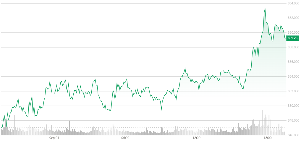 Binance Coin was also going well as it increased by 1.52% to reach $859.79. The coin had a brief period of volatility falling below the $850 mark, but soon bounced back and settled in the middle. Towards the latter part of the session, a good rally pushed the prices above $860 before it began to experience a slight pullback.