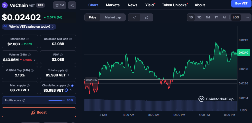 Cryptocurrency markets showed steady performance as VeChain, Hedera, Litecoin, and Layer Brett held key support levels. Gains were modest but consistent, reflecting resilience across these projects. The current consolidation signals potential strength ahead of September trading momentum.