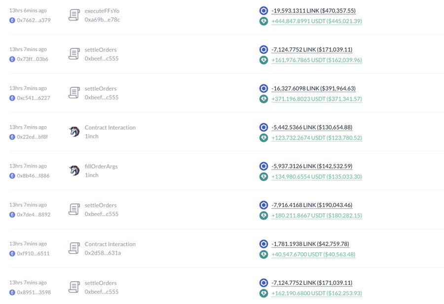 - The LINK-to-USDT swaps were executed in structured batches, avoiding price slippage and maintaining market stability.